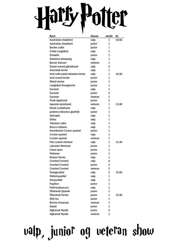 valp 4-9 måneder – junior 9-18 måneder – veteran 8+år